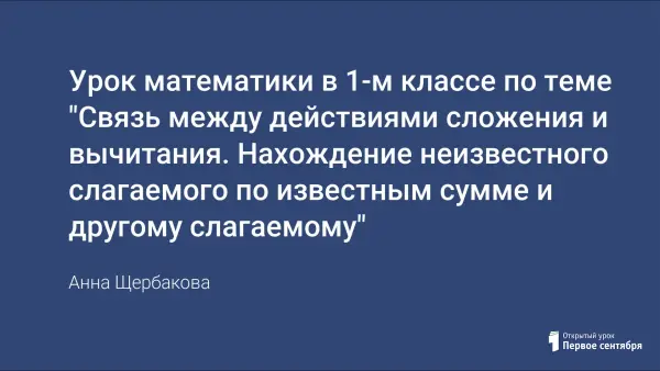 Урок разработан по развивающей системе Л.В. Занкова. Урок позволяет установить связь между действиями сложения и вычитания; помогает вывести правило о нахождении неизвестного слагаемого; развивает внимание, память, мышление, речь; воспитывать интерес к изучению математики.