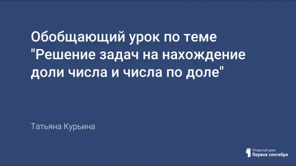 Представлен конспект урока математики по решению задач и нахождению доли числа и числа по доле.