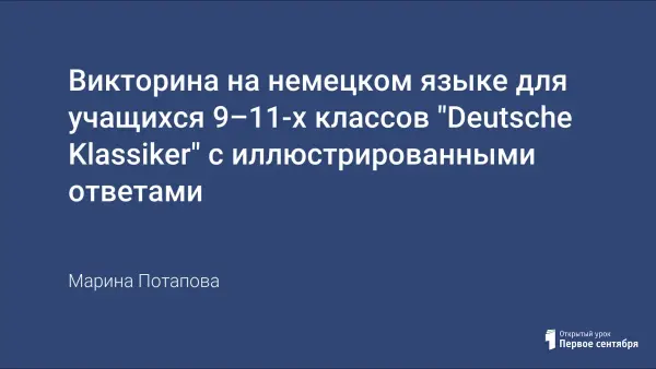 Викторина является внеклассным мероприятием, которое можно использовать как дополнительный материал к учебнику «Немецкий язык. Шаги 5» (авторы И.Л. Бим, Л.В. Садомова) и "Literatur" к учебнику «Немецкий язык, контакты,10-11 классы» (авторы Г.И. Воронина, И.В. Карелина). Учащиеся больше узнают о жизни Гете, Шиллера, Гейне, проникают в систему духовных ценностей Германии.