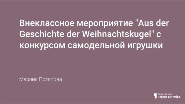 Мероприятие предназначено для учащихся 3–11-х классов, изучающих немецкий язык по общеобразовательной программе. Дает страноведческую и культуроведческую информацию; ученики узнают историю появления елочных шаров, родина которых – немецкий город Лауша; прививает любовь к изучению истории Германии; знакомит с рождественскими традициями, нравами, обычаями страны.