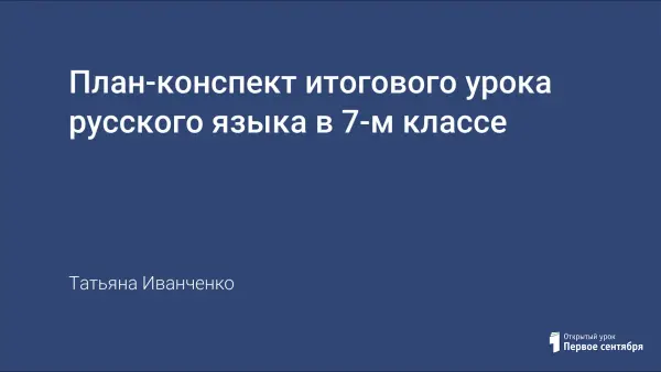 Урок русского языка в 7-м классе повторяет и проверяет усвоение грамматических признаков и правописания самостоятельных частей речи, изученных в 7-м классе; совершенствует умение учащихся использовать полученные теоретические сведения на практике.
