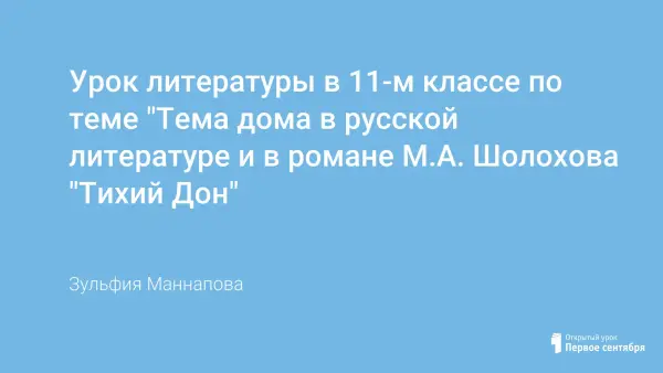 Урок литературы в 11-м классе является продолжением изучения темы, которая раскрывается русскими писателями. Именно поэтому работа на занятии предполагает экскурс в русскую литературу XVII–XX веков – вспоминаем Д.И. Фонвизина, Н.М. Карамзина, А.С. Грибоедова, А.С. Пушкина, И.С. Тургенева, Л.Н. Толстого, Н.С. Лескова, Н.А. Некрасова, М.А. Булгакова. Анализируя «Тихий Дон», проводим параллели с современностью, с жизнью семей учеников, приходим к выводу о важности семьи, взаимоотношений «отцов и детей», учимся прощать и понимать…