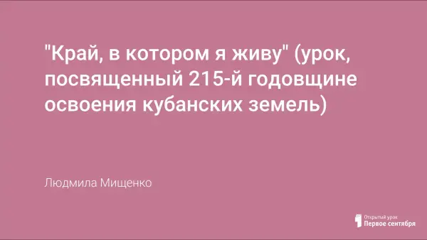 В методической разработке предоставлен опыт создания обзорного библиотечного урока, посвященного юбилею освоения кубанских земель казаками. Успех предлагаемого урока кроется в приобретенном чувстве гордости за свой край, эстетического наслаждения красотой родных просторов. В ходе урока учитель помогает ученику понять, почему многие народы всегда привлекала кубанская земля, причины заселения территории казаками. Выбранная система вопросов и заданий и поисковая деятельность постепенно и ненавязчиво подводят учеников к логичным выводам. Ощущение сопричастности к успеху развития региона мотивирует учащихся реализовать свой потенциал на благо развития Родины, к дальнейшей познавательной деятельности. Данный материал может быть использован учителем с 1-го по 5-й класс на уроках окружающего мира