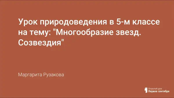 Урок природоведения в 5-м классе с целью познакомить учащихся с созвездиями как участками звездного неба, научить находить на звездном небе и звездной карте самые узнаваемые созвездия, воспитывать чувство прекрасного.