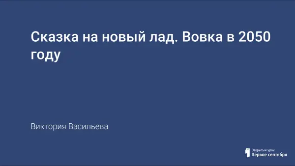Представлен сценарий праздника, предназначенного для новогоднего КВН, досуга, школьных праздников. За основу взят мультфильм «Вовка в тридевятом царстве». Мы живем в век информационных технологий и стараемся идти с ним в ногу. Учащиеся 5-го класса решили пофантазировать, что же могло произойти с Вовкой, попади он в 2050 год. Сценарий сопровождается презентацией и «переделанными» песнями.