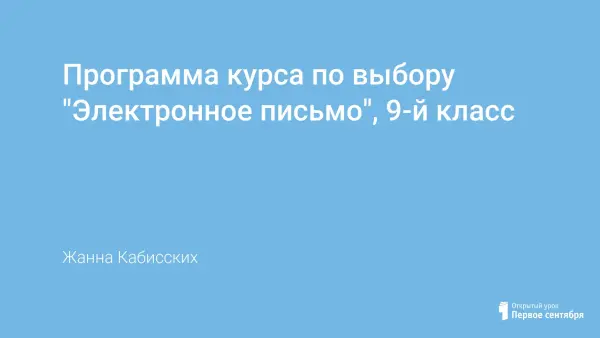 Целью курса является знакомство с работой электронной почты, развитие языковой культуры при описании реалий жизни и овладение этикетом письменной речи. Курс предполагает проведение 16 уроков. При изучении курса для обучаемых предусмотрены большие возможности для самостоятельной работы - 12 часов практических занятий и 4 часа теоретических занятий.