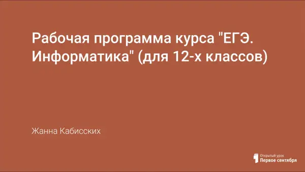 Курс рекомендован обучающимся 12-х классов вечерней (сменной) общеобразовательной школы очной формы обучения желающих сдать ЕГЭ по информатике. Курс рассчитан на 34 часа лекционно-практических занятий и проводится в течение учебного года по 1 часу в неделю.