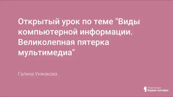 Для проведения уроков создаю учебные презентации в программе Microsoft PowerPoint по различным темам. Уметь работать с информацией - это значит уметь принимать, обрабатывать, хранить и выдавать эту информацию. С какой информацией может работать компьютер, а с какой - нет? Что такое мультимедийный компьютер? На все вопросы есть ответ в данном уроке.