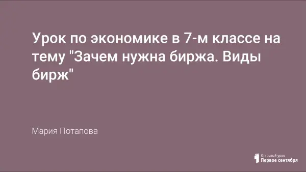Урок по экономике в 7-м классе на тему "Зачем нужна биржа. Виды бирж"