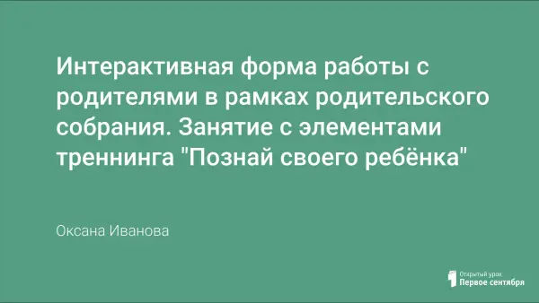 Мир взрослого и мир ребёнка пересекаются в реальной жизни. Отсюда, очевидно, возникает в дальнейшем непонимание между ними, классический конфликт "отцов и детей". Предложенная тема помогает расширить горизонт общения. На наш взгляд, достаточно продуктивными для решения поставленных задач является интерактивная форма работы с родителями, которая возможна даже в рамках родительского собрания.