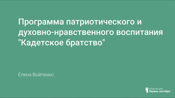 Цель программы - создание условий для формирования личности гражданина и патриота России с присущими ему ценностями, взглядами, мотивами деятельности и поведения. Данная программа охватывает весь педагогический процесс пронизывает все структуры, интегрируя учебные занятия и внеурочную жизнь обучающихся, разнообразные виды деятельности. Рассчитана на 3 года.