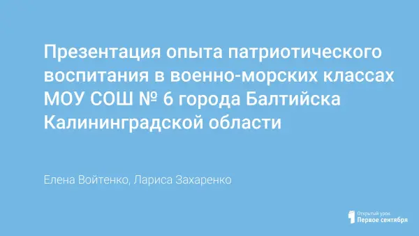 Презентация опыта патриотического воспитания в военно-морских классах МОУ СОШ № 6 города Балтийска Калининградской области