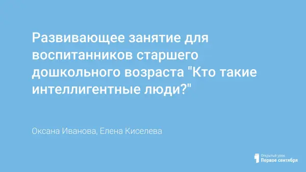 Развивающее занятие для воспитанников старшего дошкольного возраста "Кто такие интеллигентные люди?"