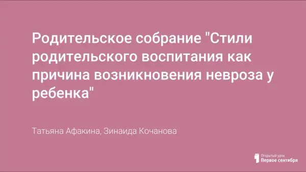 Родительское собрание "Стили родительского воспитания как причина возникновения невроза у ребенка"