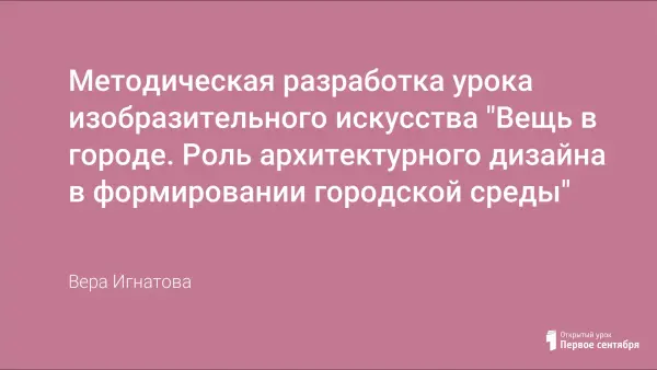 Современный человек живёт в среде "второй природы". Для того чтобы быть квалифицированным пользователем сложного мира построек, он должен быть элементарно грамотен. Изучение конструктивных искусств в 8-м классе способствует получению этих знаний. На данном уроке учащиеся получают знания об особенностях образного языка конструктивных видов искусства, единстве функционального и художественно-образного начал; знакомятся с образцами дизайнерских решений. Школьники учатся моделировать дизайнерские объекты в объёме; владеть навыками формообразования, использования объёмов в дизайне. Использование местного материала способствует воспитанию любви к своей малой Родине.
