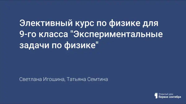 Элективный курс по физике для 9-го класса "Экспериментальные задачи по физике"