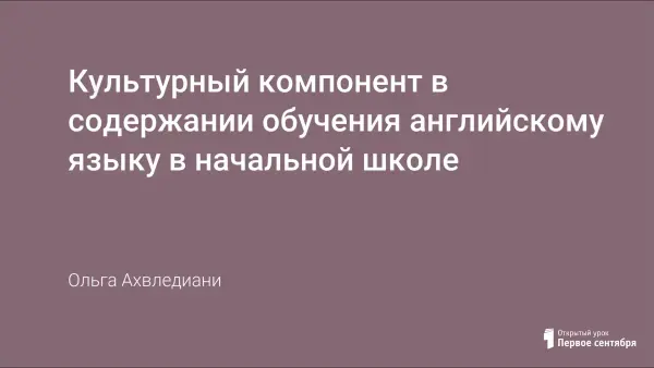 Воспитание личности протекает в процессе изучения истории культуры. Дети 7–10 лет особенно восприимчивы к чужой культуре. Они проявляют интерес к жизни сверстников за рубежом, к их обычаям, традициям и т.д. Материалы, посвященные стране изучаемого языка, стимулируют образное мышление, формируют вкус и с передачей информации оказывают воздействие на эмоции человека. Цель работы - представление культуры страны изучаемого языка и родной культуры в содержании обучения.