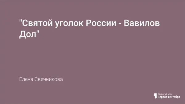 Исследовательская работа «Святой уголок России – Вавилов Дол» учащихся 10-го класса НОУ «Поиск» посвящена истории и возрождению Вавилова Дола Ивантеевского района Саратовской области.