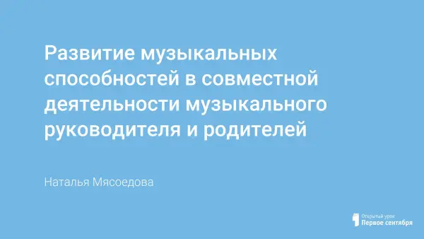 Развитие музыкальных способностей у детей дошкольного возраста оказывает разностороннее влияние на личность ребенка, и очень важно, чтобы в кругу семьи ребенку помогали любящие его люди, чтобы они были заинтересованы деятельностью ребенка в детском саду, чтобы они одобряли его первые попытки в искусстве. Но для этого "взрослых детей" – родителей тоже нужно заинтересовать и привлечь к помощи в развитии и воспитании разносторонней личности ребенка.