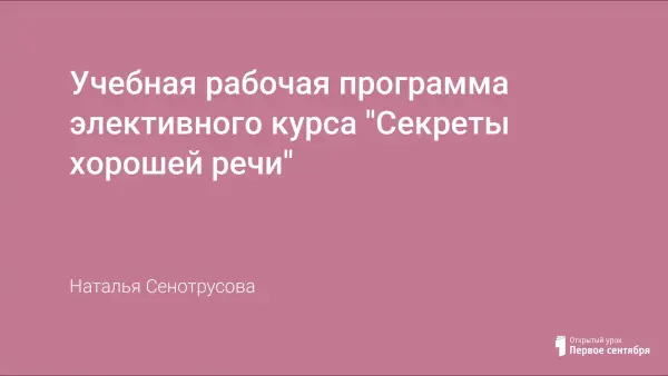 В данной программе центральную часть представляет раздел о грамматических нормах, а также нормах произношения современного русского языка. Помимо сведений о нормах литературного языка программа содержит краткое разъяснение общественного значения хорошей речи, общие сведения о сущности и строении языка, а также развернутую характеристику главных коммуникативных свойств русской литературной речи, являющейся основным компонентом коммуникативной культуры, развитие навыков которой предусмотрено «Концепцией модернизации образования».