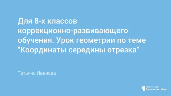 На уроке геометрии в 8-м классе учащиеся знакомятся с формулой, которая позволит находить координаты середины отрезка, не выполняя построения в координатной плоскости. Разбирают типичные задачи. Отрабатывают данную формулу на примерах.