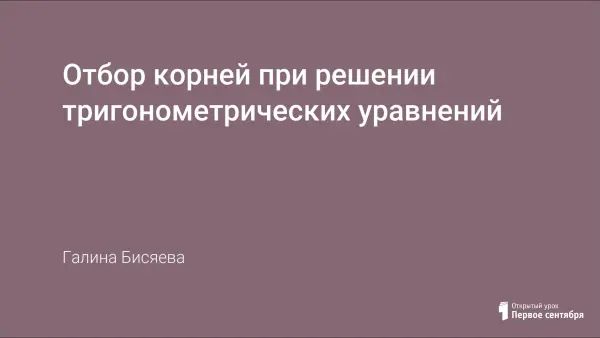 Весьма распространены на ЕГЭ (2 часть группа С1) задания, в которых требуется провести исследование корней тригонометрического уравнения, в результате чего, какая-то часть полученных корней выбирается или, наоборот, отбрасывается на основании явно или неявно указанного в задании признака. На представленном уроке-лекции производится отбор корней тригонометрического уравнения с помощью тригонометрического круга и отбор корней тригонометрического уравнения, принадлежащих заданному отрезку.