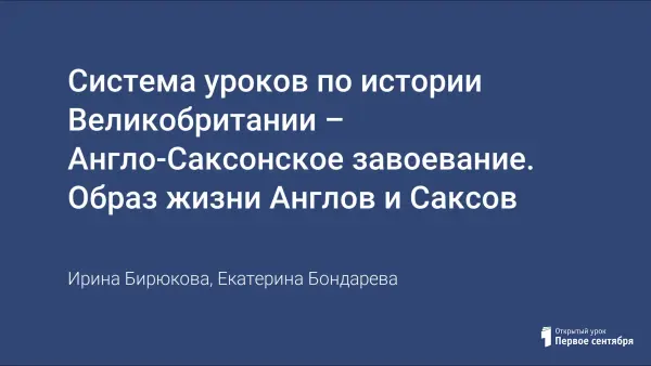 Система уроков по истории Великобритании – Англо-Саксонское завоевание. Образ жизни Англов и Саксов