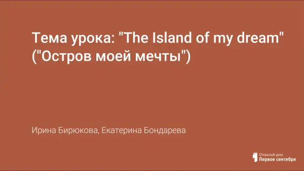 Тема урока: "The Island of my dream" ("Остров моей мечты")