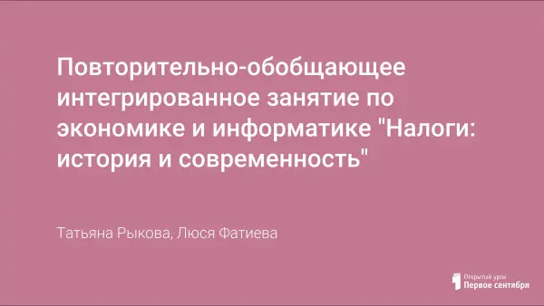 Разработка представляет собой интегрированное занятие по экономике и информатике на предпрофильном уровне в 9-м классе. Тема занятия называется "Налоги: история и современность". Её отличают страницы истории налогообложения, практическая направленность занятия, сочетание индивидуальной и коллективной видов работ, использование компьютерных технологий, отрывок из кинофильма и небольшая инсценировка.