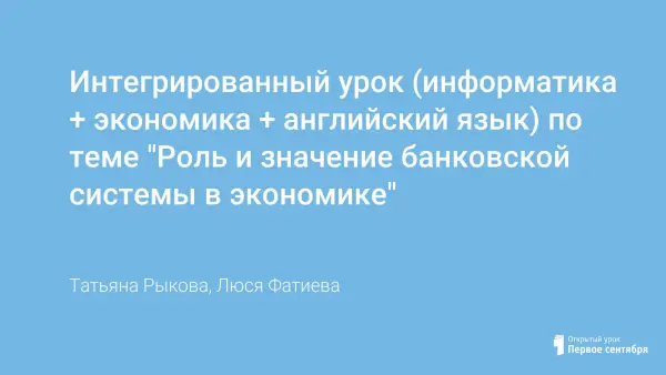 Одним из способов проведения эффективных уроков являются интегрированные повторительно-обобщающие занятия. Именно в процессе их проведения можно выявить, какие умения и навыки закрепились, именно на этих уроках создается целостная картина мира. Именно на этих уроках можно дать познавательные задания, показать театрализованные сценки, чтобы нагляднее, образнее учащиеся могли соприкоснуться с реальностью; провести деловую игру, чтобы понять все процессы, которые происходят в жизни общества. Именно таким является интегрированное повторительное обобщающее занятие по экономике, информатике и английскому языку по теме "Роль и значение банковской системы в экономике".