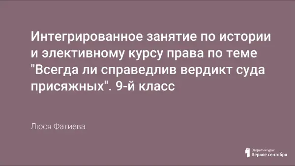 Урок представлен в форме судебного процесса одного из первых громких дел суда присяжных XIX века над В.Засулич, и дана попытка объяснить влияние и значение вердикта суда для общества. Урок разработан с использованием ИКТ.