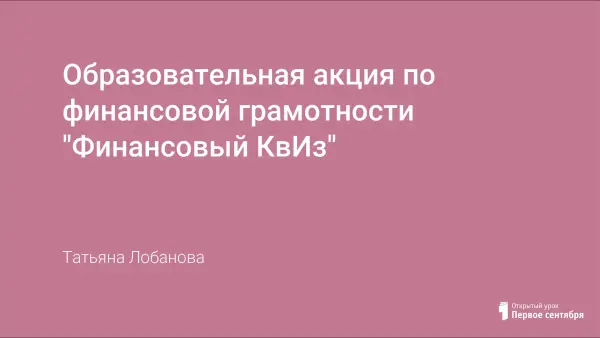 Цель Квиза: развитие и поддержка у школьников интереса к теме финансов, а также содействие воспитанию финансово грамотного поколения.