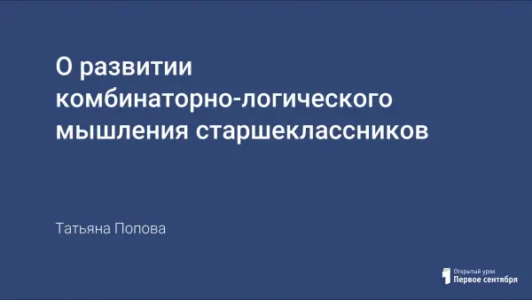 В статье представлены материалы, отражающие важность и необходимость формирования развития комбинаторно-логического мышления старшеклассников. Разработана серия элективных курсов по математике, подобраны технологии и методики, способствующие разрешению поставленной проблемы.