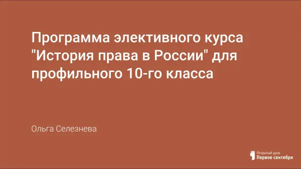 Программа дает возможность учащимся сформировать свой взгляд на историю России, ознакомиться с ее правовыми традициями, проследить развитие права с Древней Руси до начала ХХI в. Данный курс является межпредметным: наряду с юридическими фактами, в его содержание входит изучение закономерностей исторического развития. Главная методологическая предпосылка курса – историческая преемственность в развитии государства и права.