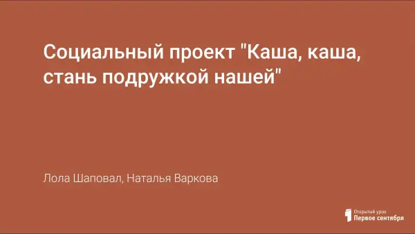 Социальный проект "Каша, каша, стань подружкой нашей"