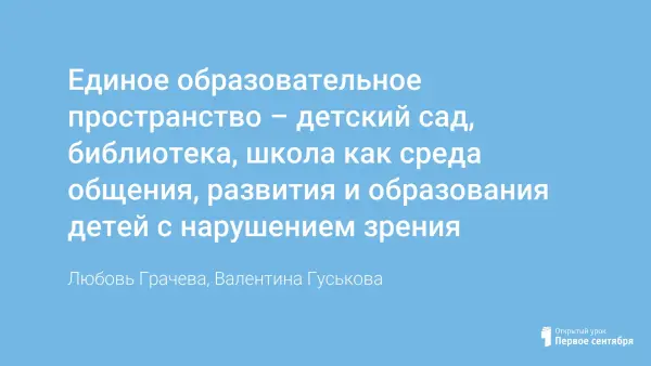 Единое образовательное пространство – детский сад, библиотека, школа как среда общения, развития и образования детей с нарушением зрения