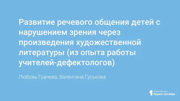 Развитие речевого общения детей с нарушением зрения через произведения художественной литературы (из опыта работы учителей-дефектологов)