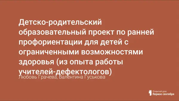 Детско-родительский образовательный проект по ранней профориентации для детей с ограниченными возможностями здоровья (из опыта работы учителей-дефектологов)