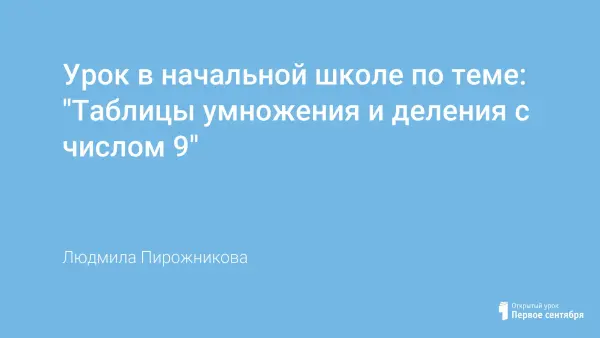 Опыт показывает, что больше всего затруднений и ошибок возникает у детей при решении примеров на умножение и деление на 9, поэтому знакомлю учеников с несколькими специальными приёмами, облегчающими вычисления. В течение урока проводилось три физкультминутки: для глаз, для снятия утомления, на развитие внимания. Для развития логического мышления, интереса к математике на уроке решаем задачи на смекалку, задачи Г.Остера.