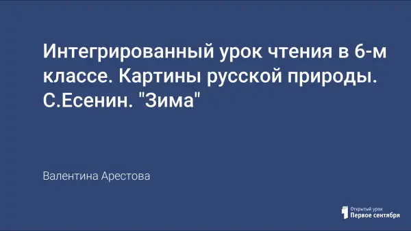 Интегрированный урок чтения в 6-м классе мобилизует прошлый опыт учащихся, формируя интерес к тексту, знакомит с его содержанием. Цель: закрепить навык чтения «про себя»; развить эмоциональное восприятие картины, описанной поэтом, и слуховое восприятие на основе словаря урока.