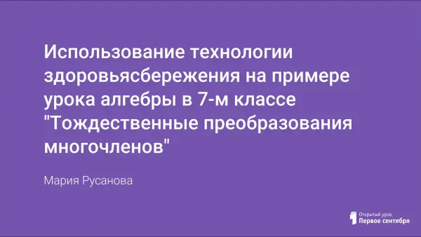 Актуальность проведения здоровьесберегающих уроков обусловлена потребностью человека, общества и государства. В предлагаемой работе рассматриваются подходы к организации главной составляющей образовательного процесса - урока и способам оценки его качества с точки зрения здоровьесбережения: здоровьесберегающая среда; нестандартная форма проведения урока с использованием мультимедиа и музыкальной релаксации; наличие эмоциональных разрядок; предупреждение гиподинамии: двигательная активность, перемена позы при смене видов деятельности.