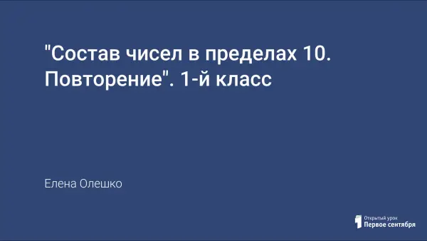 Учащиеся повторяют состав чисел в пределах 10. Проводится работа над таблицей сложения и вычитания в пределах 10.