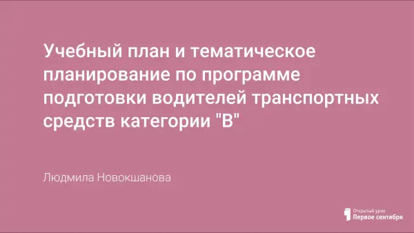 Учебный план и тематическое планирование составлены на основе "Программы подготовки водителей транспортных средств", разработанной кафедрой Санкт-Петербургского государственного университета в 1997 г. Для обучения используется дидактический материал автошколы и наглядные пособия, разработанные и изготовленные составителем и учениками на уроках технического труда. В учебном процессе используются пособия издательств "Просвещение", "Равновесие", компьютерный тренажёр "За рулём". Результат - выдача водительского удостоверения категории "В".