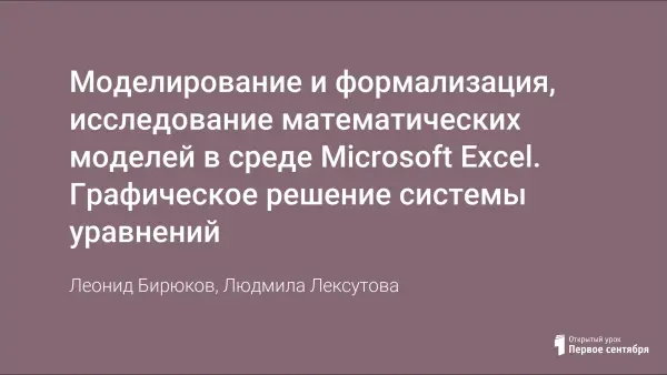 Моделирование и формализация, исследование математических моделей в среде Microsoft Excel. Графическое решение системы уравнений