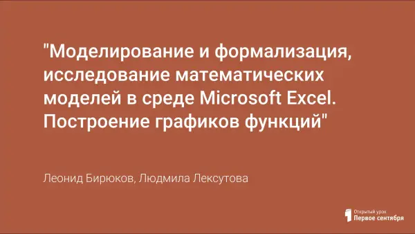 "Моделирование и формализация, исследование математических моделей в среде Microsoft Excel. Построение графиков функций"