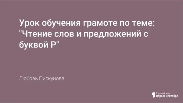 Урок обучения грамоте построен на основе учебника "Русская азбука" В.Г. Горецкого. Закрепление знаний о звуках [р], [р'] проходит в занимательной форме. Разнообразие методов и приёмов работы на уроке способствует активизации мыслительной деятельности учащихся и высокой работоспособности в течение всего урока.