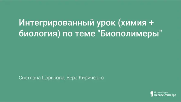 Интегрированный урок (химия + биология) по теме "Биополимеры"