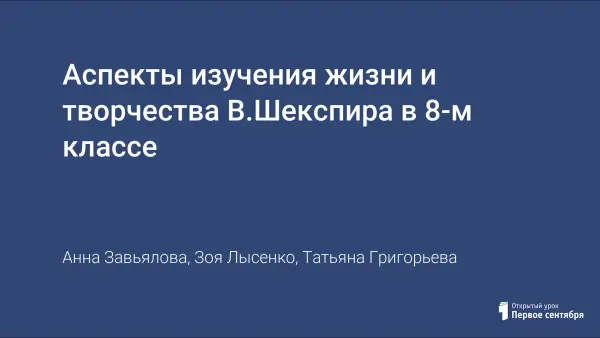 Аспекты изучения жизни и творчества В.Шекспира в 8-м классе