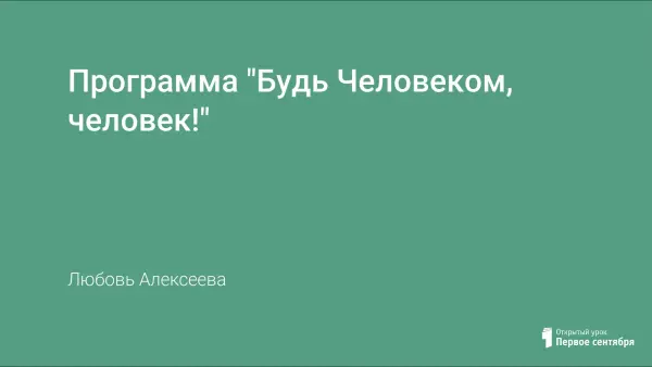 Мы живём во время крушения всех нравственных идеалов, напряжённости в человеческих отношениях, поэтому, воспитывая детей, учителя должны обращать их взор к доброму, вечному, благому. Деловое общение, общение учителя с учащимися, общение в семье невозможны без опоры на принцип толерантности. Программа "Будь Человеком, человек!" должна помочь педагогам раскрыть и развить нравственные чувства, привить умение делать правильный выбор в ситуациях межличностного общения.