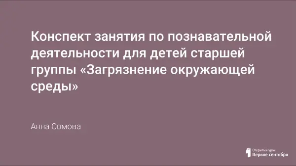 Цель занятия: знакомство со способами решения проблемы загрязнения окружающей среды.